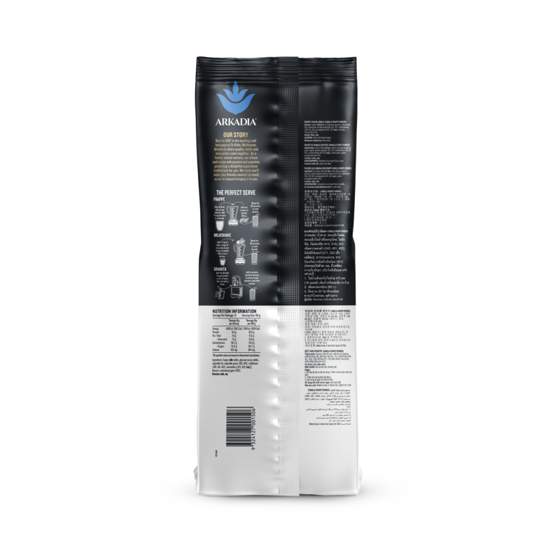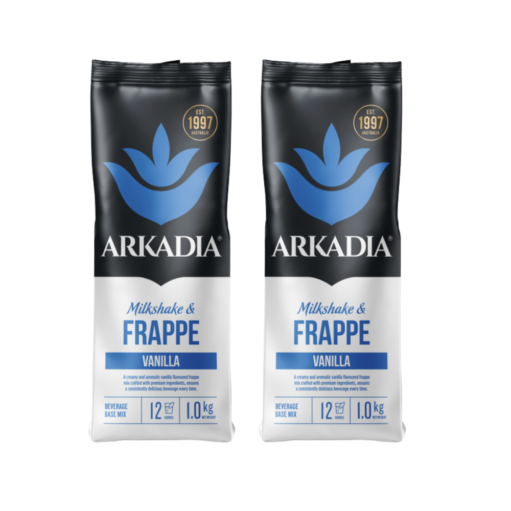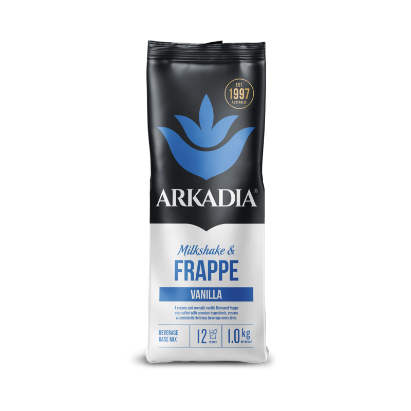 Arkadia Vanilla Frappe & Milkshake blend is your go-to indulgence for creating rich, creamy, and flavourful drinks that evoke nostalgic childhood memories. This versatile powder mix is perfect for preparing delicious frappes or milkshakes. Simply add milk and ice, then blend to perfection. Ideal for use with blenders or granita machines, this blend ensures smooth texture and exceptional flavour every time.